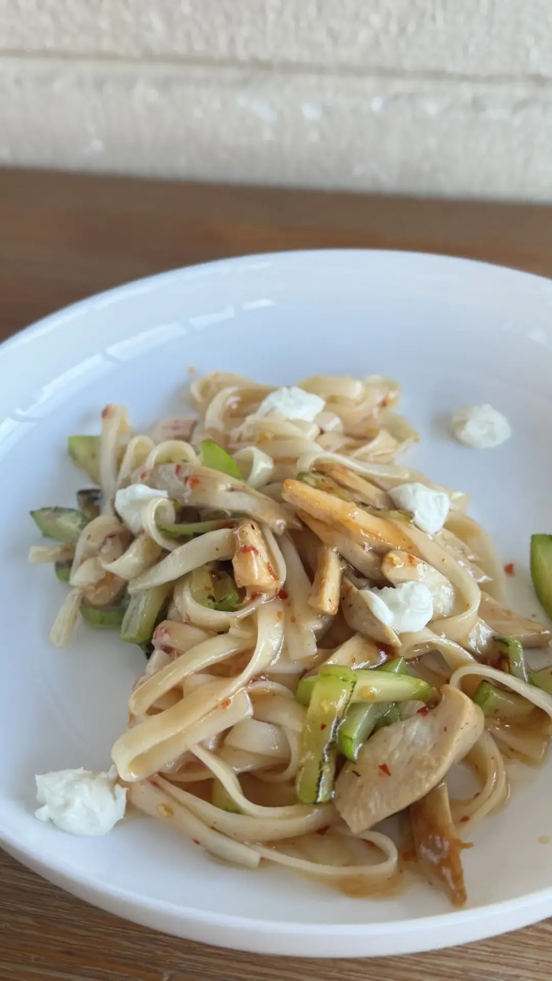 Удон с курицей, кабачком и сливочным сыром